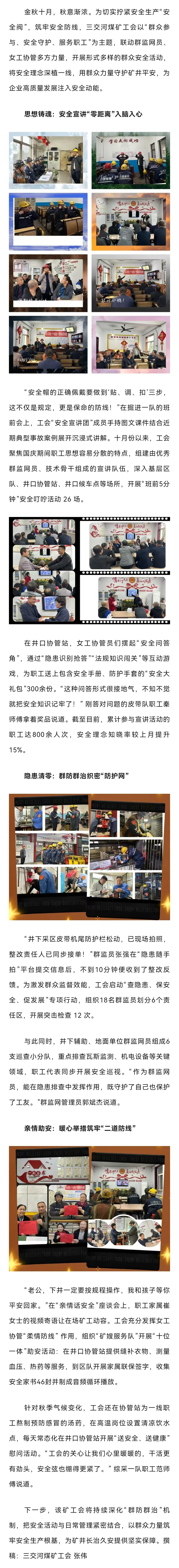 【基层动态】十月金秋护安全 群力筑牢“防护网”——三交河煤矿工会群众安全活动走深走实​